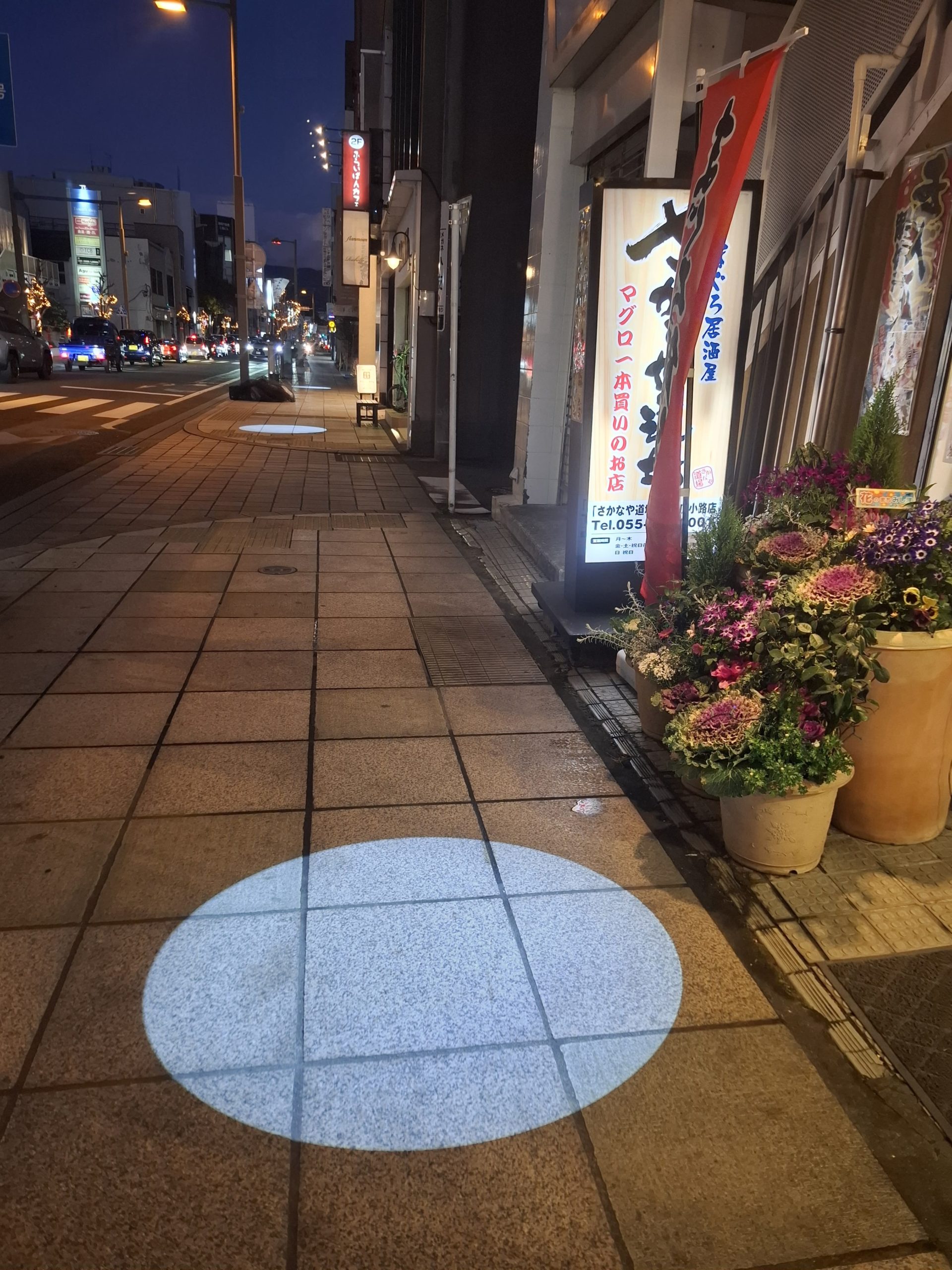 店頭にスポットライトを設置して歩道を照らすことといたしました。